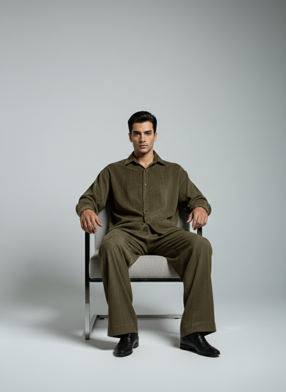 MEN'S CORDUROY CO-ORD SET – MEHNDI GREEN