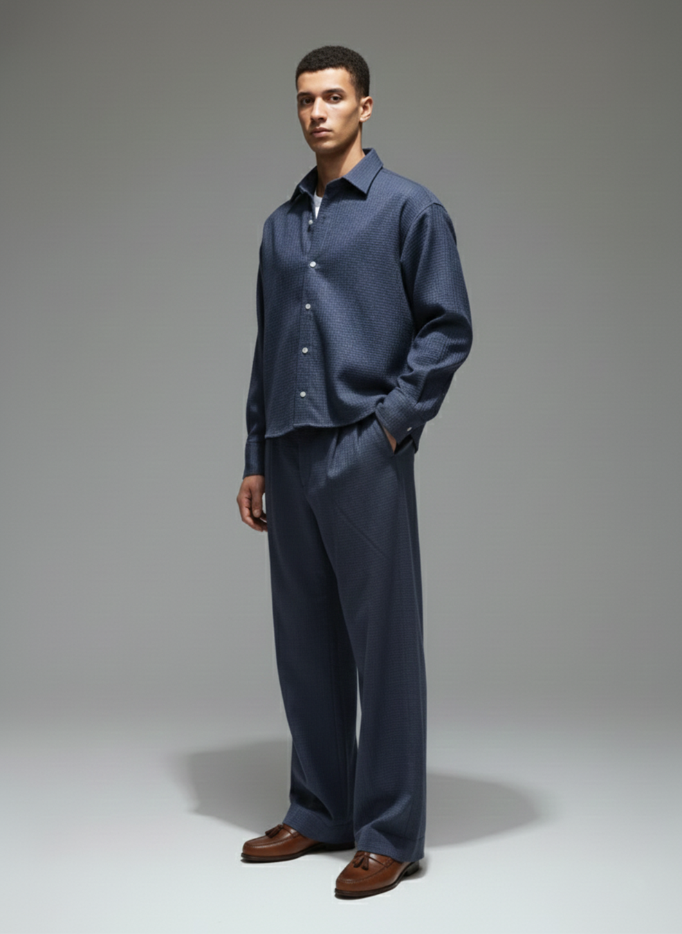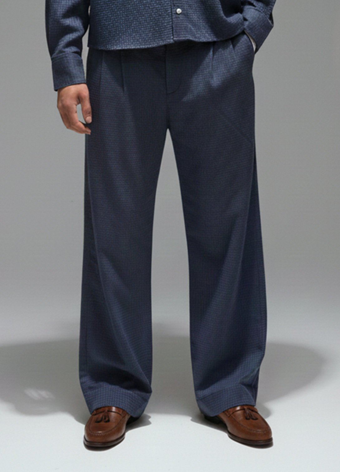Loose-fit pleated trousers in a rich blue shade, offering relaxed comfort with a structured, elegant drape. Perfect for casual, smart-casual, or co-ord looks.